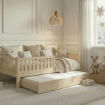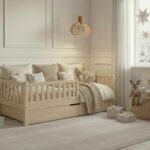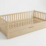 - Alle Elemente werden von Hand geschliffen, um sicherzustellen, dass die Oberfläche des Bettmaterials glatt, fehlerfrei und sicher für das Kind ist.