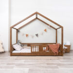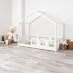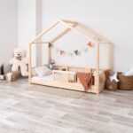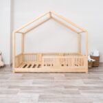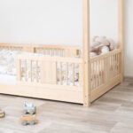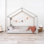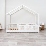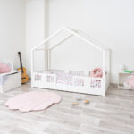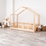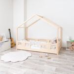 ASTRIA mini ist ein bezauberndes Einzelbett in Hausform, das Funktionalität, Sicherheit und zeitlose Ästhetik vereint. Direkt auf dem Boden platziert, schafft es einen sicheren Raum, der ideal als erstes Bett für ein Kind geeignet ist. Dank des niedrigen Profils kann das Kleinkind selbstständig ins Bett steigen und wieder herausklettern, was seine Entwicklung und Unabhängigkeit von klein auf unterstützt.