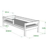 Alle Betten sind aus FSC-zertifiziertem Kiefernholz gefertigt und mit schadstofffreien Wasserfarben gemäss EN 71-3 behandelt. Die Konstruktion ist auf bis zu 190 kg belastbar. Der Rausfallschutz ist beidseitig montierbar und jederzeit abnehmbar. Sie erhalten 2 Jahre Garantie.