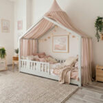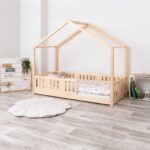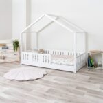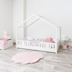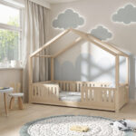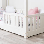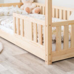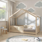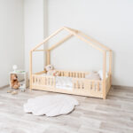 LUNETTA mini ist ein bezauberndes Einzelbett in Hausform, das Funktionalität, Sicherheit und zeitlose Ästhetik vereint. Direkt auf dem Boden platziert, schafft es einen sicheren Raum, der ideal als erstes Bett für ein Kind geeignet ist. Dank des niedrigen Profils kann das Kleinkind selbstständig ins Bett steigen und wieder herausklettern, was seine Entwicklung und Unabhängigkeit von klein auf unterstützt.