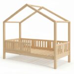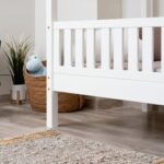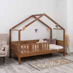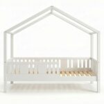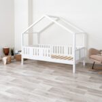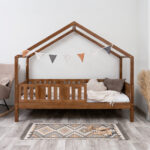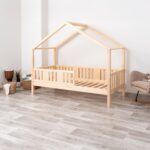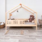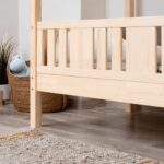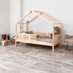 LUNETTA ist ein einzigartiges Einzelbett in Hausform, das Funktionalität, Langlebigkeit und märchenhaften Charme vereint. Dank der erhöhten Konstruktion auf 20 cm hohen Beinen hilft es, Ordnung im Kinderzimmer zu halten. Die vollständig aus natürlichem Kiefernholz gefertigte Konstruktion garantiert Langlebigkeit, Sicherheit und ein aussergewöhnliches Erscheinungsbild. Das charakteristische Holzdach verleiht dem Ganzen eine unverwechselbare Atmosphäre – es schafft einen Raum, in dem Schlaf, Spiel und Fantasie jeden Tag ineinander übergehen.