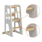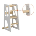 Unser patentiertes, innovatives Sicherheitssystem (geschütztes Gebrauchsmuster) schützt Ihr Kind zuverlässig vor dem Herausfallen – und bietet gleichzeitig volle Bewegungsfreiheit und Komfort. Der Küchenhelfer ist höhenverstellbar auf zwei Ebenen, sodass er mit dem Kind mitwächst. Abgerundete Kanten und eine zusätzliche Verstärkung an der Basis sorgen für Stabilität und absolute Sicherheit.